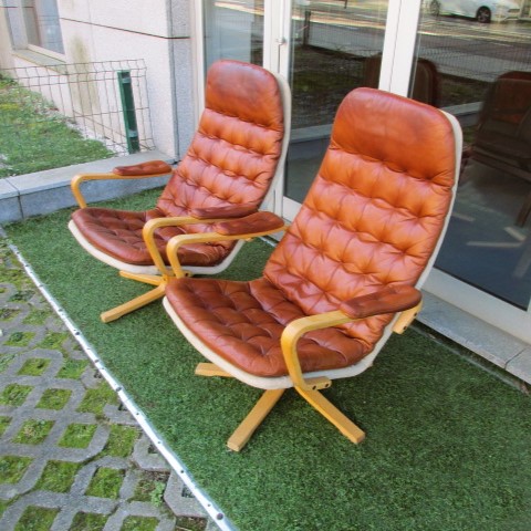 Par de poltronas nórdicas em pele, desenhadas por Ingmar Relling
