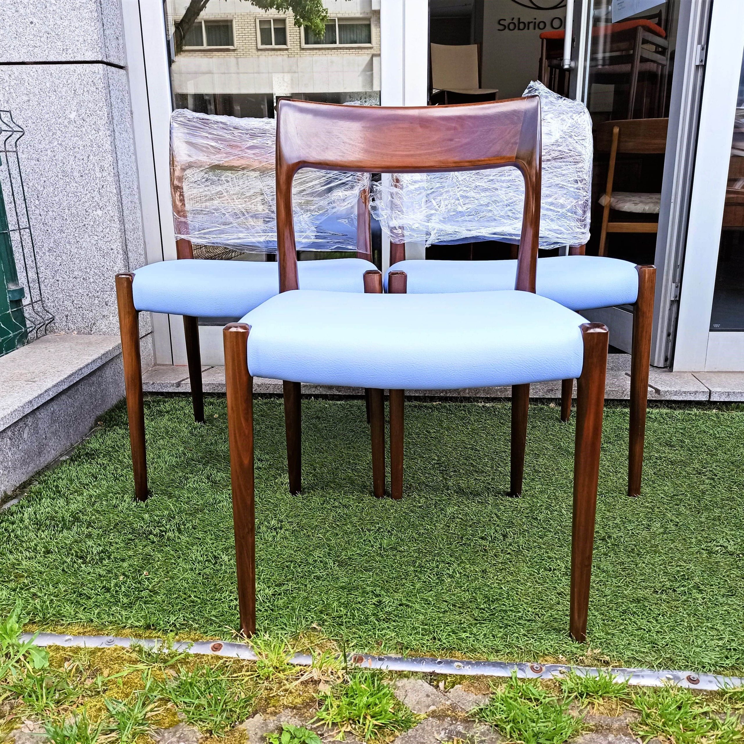 Lote de 8 cadeiras nórdicas em pau santo, desenhadas por Erik Buch