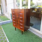 Secretária nórdica em pau santo. Peça muito elegante, com pés de “palito” e com uma zona de arrumação por debaixo do tampo.